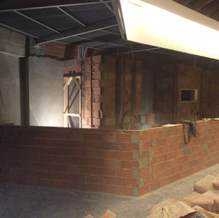 Como podéis ver, la reforma del local comercial se inicia con el planteamiento de los espacios de cocina, baño y barra con la construcción y el levantamiento de tabiques de fábrica cerámica de obra con mortero de cemento.